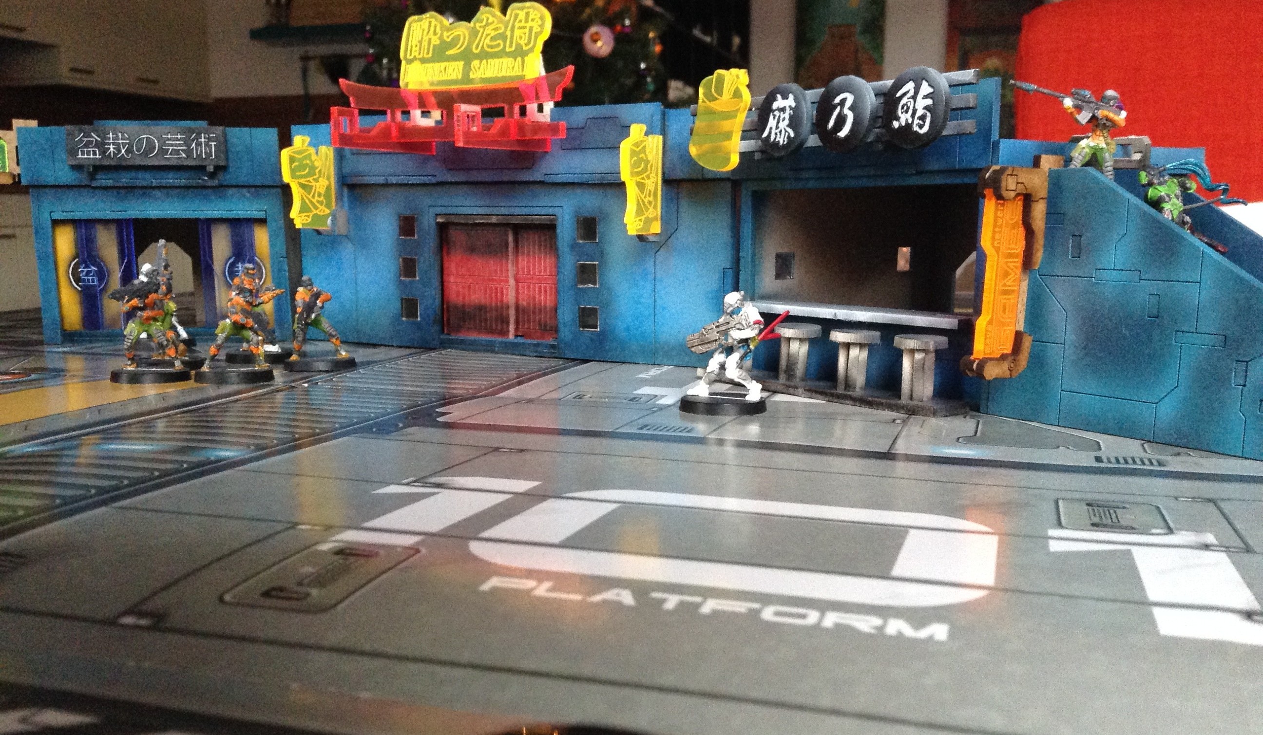 The Neon City line is Customeeple’s second step in terrain making for Infinity, after they dropped their amazing Church on the community! The buildings are designed to show a cyberpunky shady district filled with nightclubs, dojos and food stands. This might be the area where the Japanese Yakuza resides on the twin planets of Yu Jing.