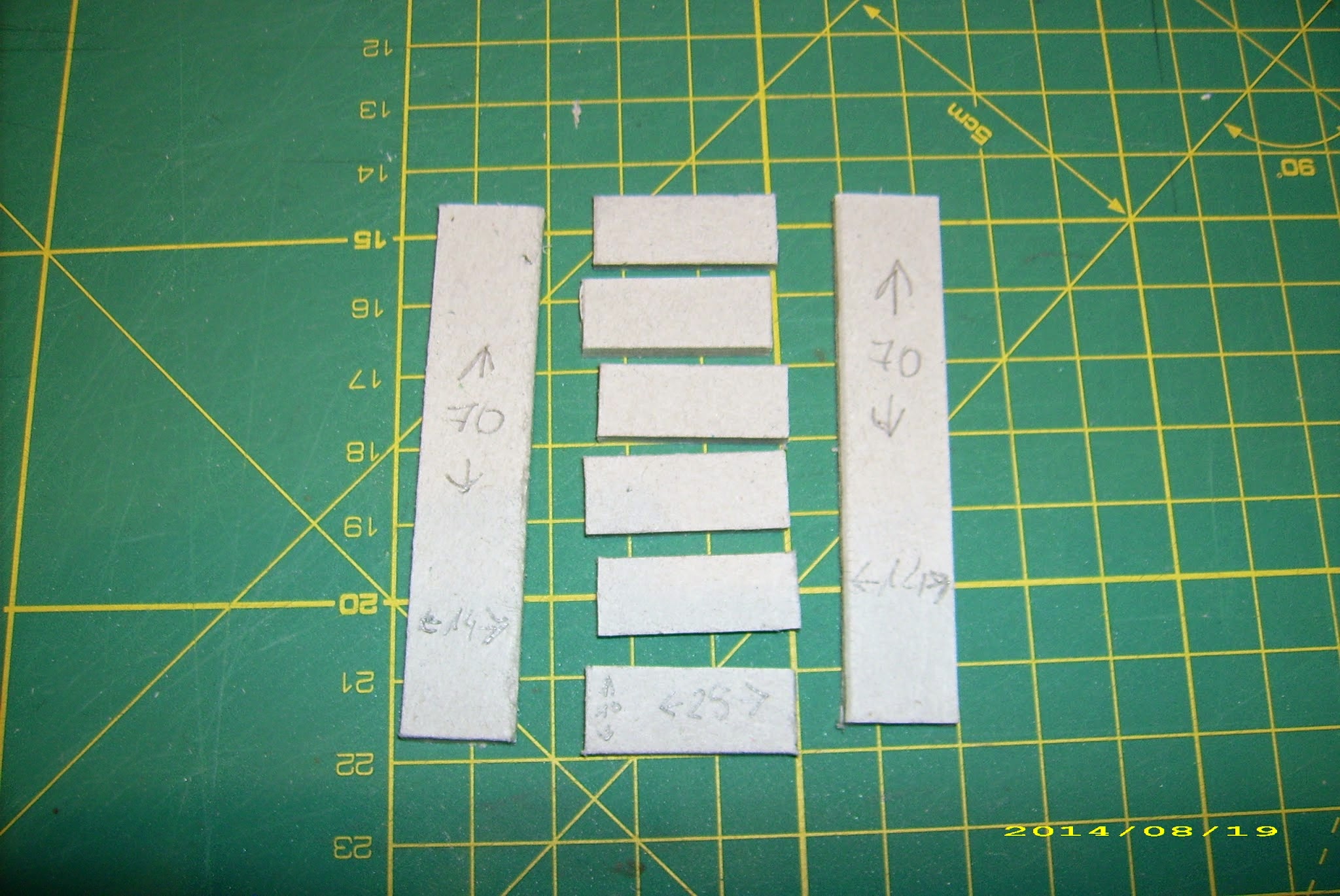 I cut off 8 slabs of cardboard, 190 by 60 millimeters. Why these dimensions?