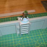 The ladder… I grabbed a leftover 30x30mm slab, put another 30mm wide, 50mm tall one as a back support, two 60mm tall side railings, steps 7mm apart (same technique as before – draw horizontal lines every 10mm, glue in a step just below each of them).