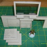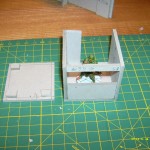 Construction is the same as with ticket booth, apart from all the walls being full height (you don’t want a window in a toilet…) and I made the doors centrally on the wall (so – not a single 20mm wide wall, but two at 6mm (leftover from cutting a 50×50 into 44x50mm). Should’ve made it 2x 7mm, as to keep to the 30mm opening, but well, let’s not be picky.
