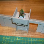 Made on the same “half size” as the comms booth, I used two leftover 6x50mm (trimmed that down to 44mm) pieces as poles. The machine itself… don’t ask, it was kitbashed from whatever was out there, apart from a 20x50mm piece I cut into two 20x20mm and one 10x20mm.