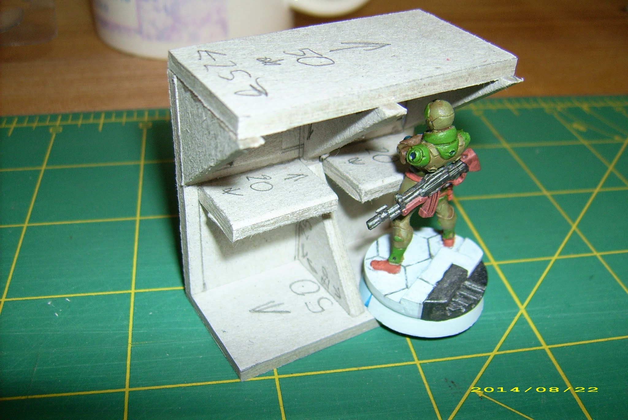 Still, enough room on the top that a figure on a 25mm base can stand there fully supported, as the rules require it.