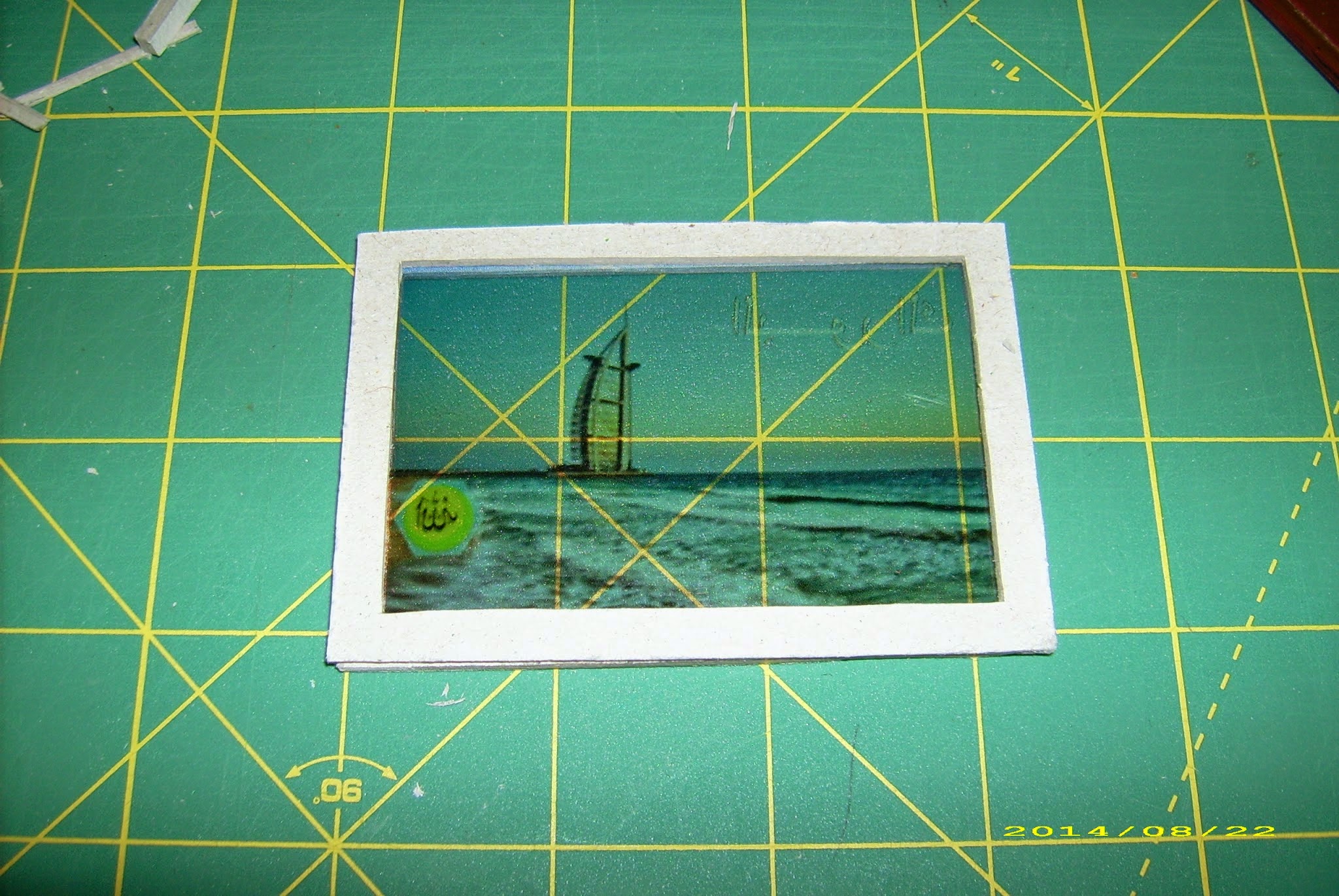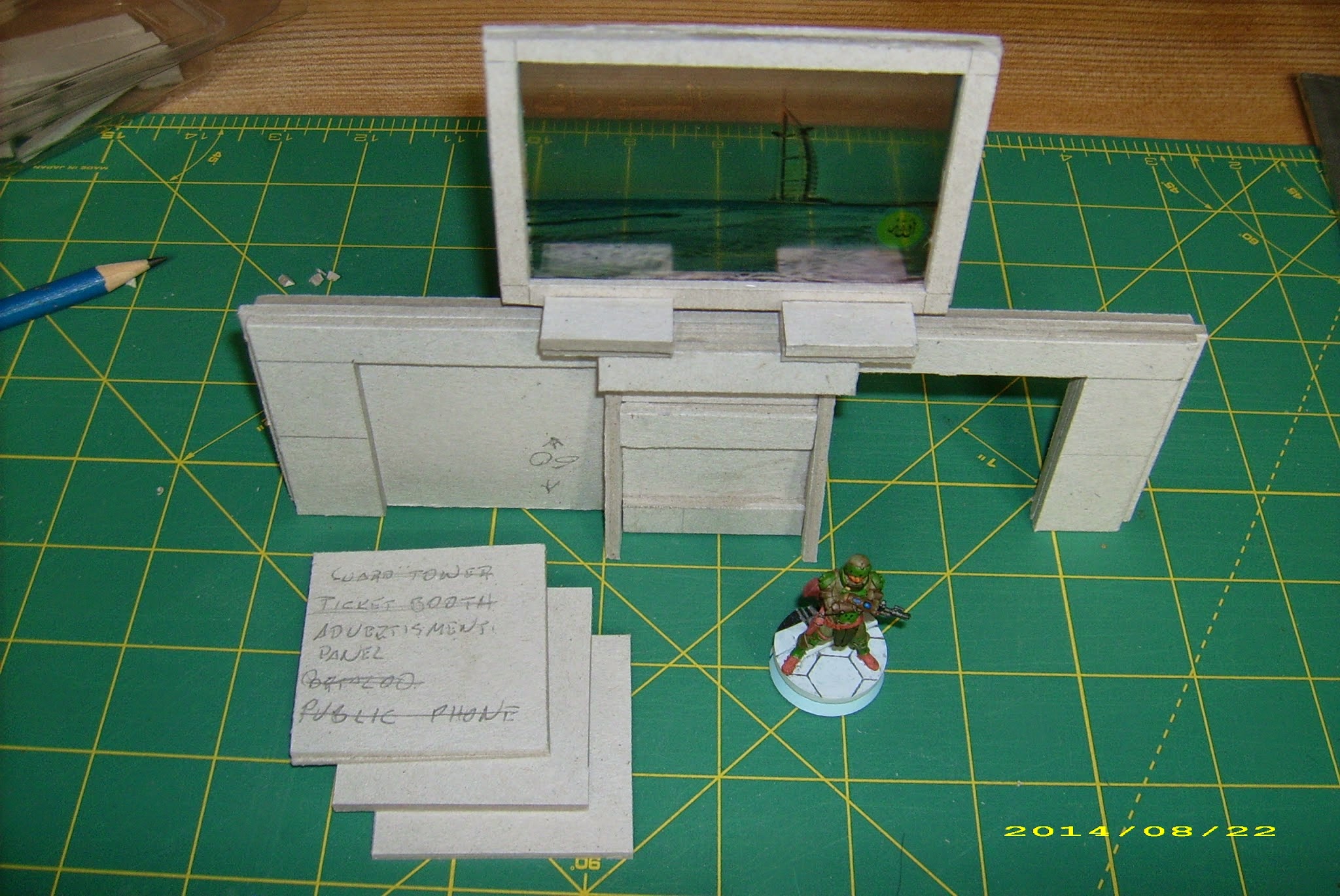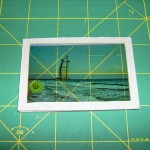 Now, this was a little tricky. The advert itself was printed on an acetate sheet (y’know, what they use for overhead projectors) with a 3mm margin around it. I then cut a 5mm thick frame to fit around it – and forgot the project for weeks. The problem is – I was using 2mm cardboard then, having scavenged some here and there and intending to use it for some experimentation with this material.