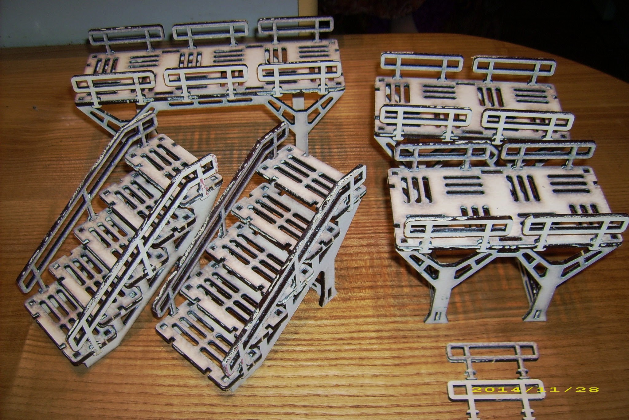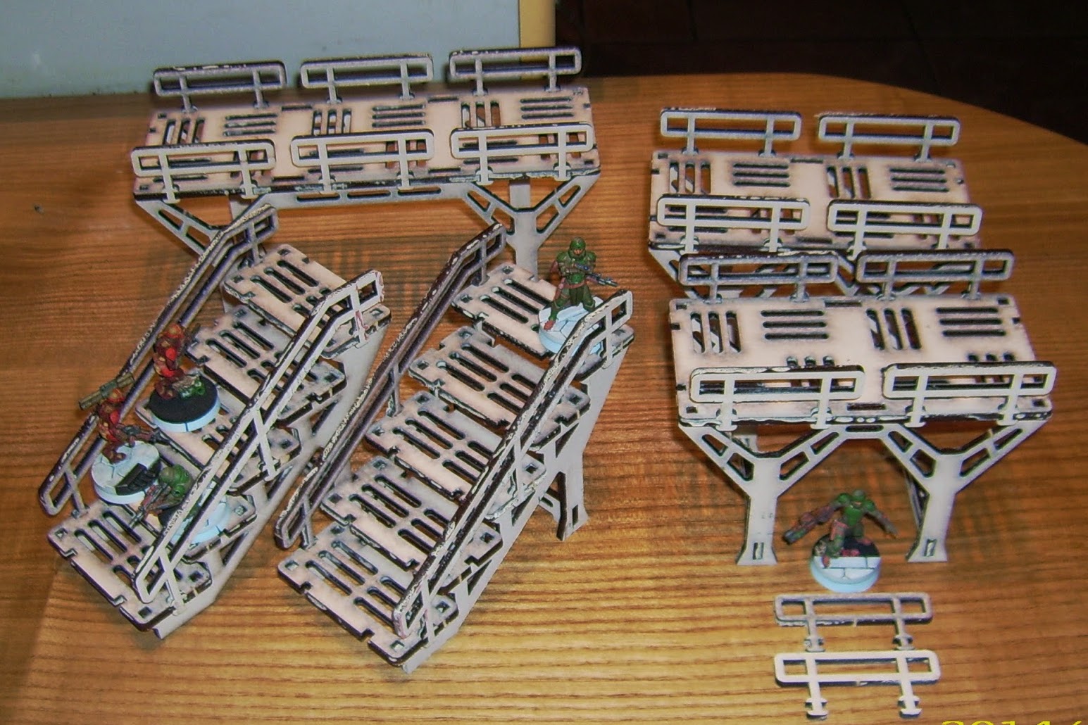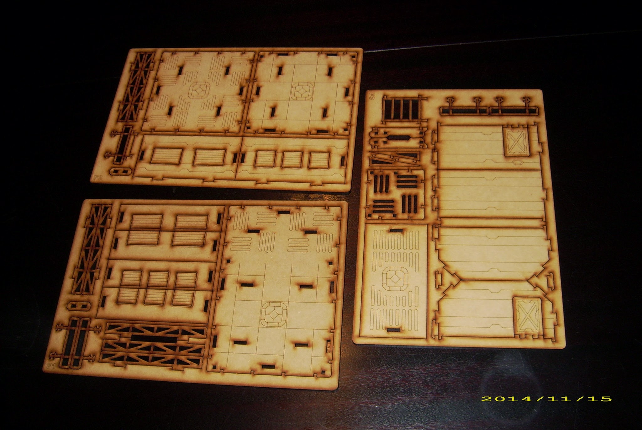 Included were a Base-0 HQ Unit, Habitat Units 1 & 2, Walkway sets 1 & 2 and the Storage Silo – or, if you prefer, an entire Base-0 Big Bundle from Systema’s webstore! Yay! That’s 24 sheets (roughly A4-sized) of laser-cut MDF terrain! Note however these sets do not contain acrylic components, so I won’t be able to say a word about it.