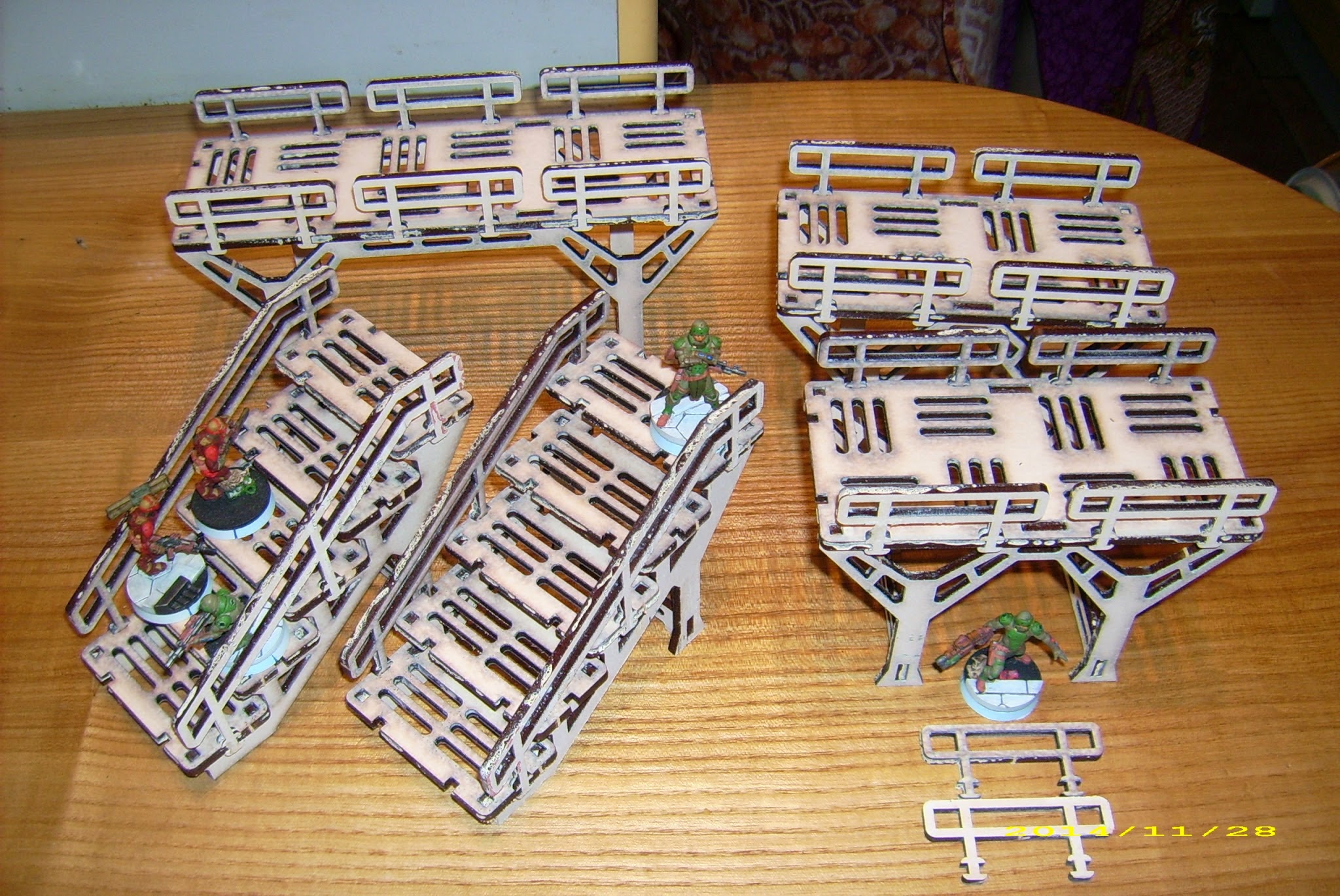 The stairs and walkways give enough space for 2 models on 25mm bases to advance together, but not enough to let a model on a 55mm base move there (though personally I’d allow that, just remove the railings for a moment).